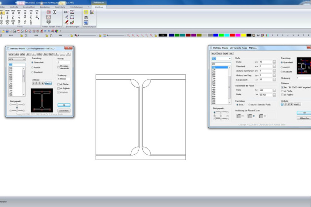 - Konstruktionshilfen (Trimmen, Parallele Linie, Winkel, Runden)