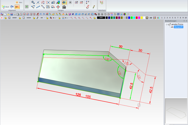 - Erzeugen von skizzenbasierenden Körpern (z. B. Austragung, gerades Prisma, Rotationskörper, Sweepkörper)