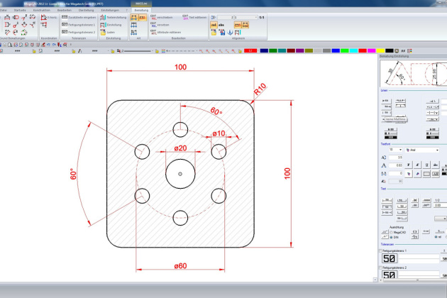 Mit MegaCAD LT entwerfen und detaillieren Sie technische Zeichnungen vom Einzelteil bis zur Fertigungszeichnung im Handumdrehen. Der Programmaufbau erinnert an ein Zeichenbrett. So können Sie zügig zeichnen, ähnlich wie mit Schablone, Lineal und Zirkel.