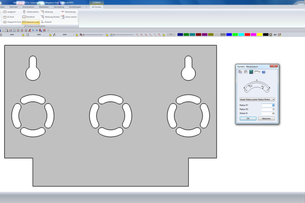 - Vordefinierte Formen erleichtern die Zeichnungserstellung (Rechteck, Langloch, Schlüsselloch, Bananenloch)