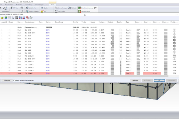 Bei der Bearbeitung bestehender Bauteile wird die Stückliste (Gewicht, Länge und Gehrungswinkel) erstellt und automatisch aktualisiert. So beschleunigt sich der Konstruktionsprozess noch einmal erheblich, und alle notwendigen Mengenangaben für eine exakte Kalkulation sind auf Knopfdruck verfügbar.