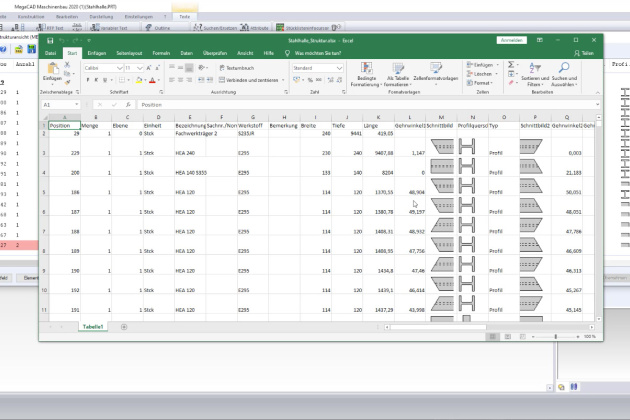 - Bei der Bearbeitung bestehender Bauteile wird die Stückliste (Gewicht, Länge und Gehrungswinkel) erstellt und automatisch aktualisiert.