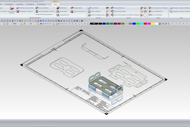 MegaCAD Profi plus erkennt und berücksichtig auf dem Blech verschiedene Bearbeitungen wie Sicken, Kiemen etc. und bildet diese in Abwicklung ab.
