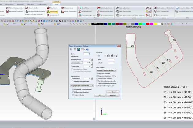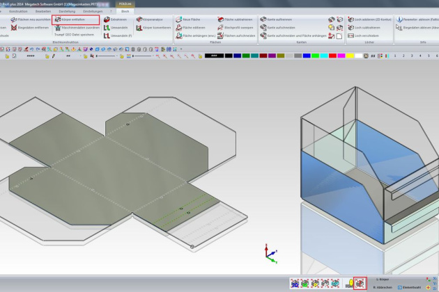 Fertigungsgerechte Faltkörperkonstruktion auf Basis (vorhandener) Volumenkörper, auf der Grundlage einer 2D-Zeichnung oder aus einem 3D-Flächenmodell. Direkte Umwandlung dünnwandigen Körper.