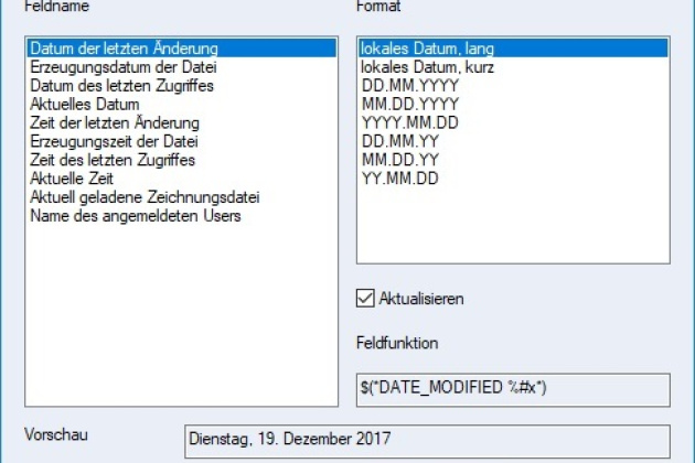Der automatische Datumsmanager ist wie die Funktion „Dateiinfo einfügen“ nun direkt in MegaCAD integriert.