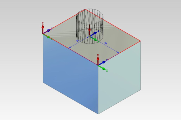 Der virtuelle Schnittpunkt der Achse einer Bohrung mit der Deckfläche wird nun auch dann als Mittelpunkt gefangen, wenn Kante verrundet wurde.