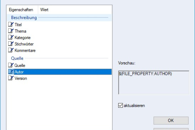 Zur Auswertung von Elementattributen wurde bislang in der Baugruppe nach einem 3D-Objekt gesucht. Nun wird, falls kein 3D-Objekt existiert, das erste verfügbare 2D-Element ausgewertet.