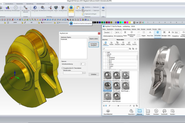 Mit KeyShot werden MegaCAD Modelle in wenigen Minuten zu fotorealistischen Darstellungen veredelt. Die MegaCAD Direktschnittstelle ermöglicht auch bei fertigen Szenen nachträgliche Änderungen an der Geometrie.