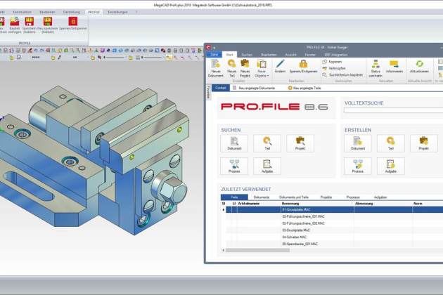 MegaCAD 2018 enthält ein offene EDM Schnittstelle. Als Pilotprojekt wurde das Programm PRO.FILE angebunden.