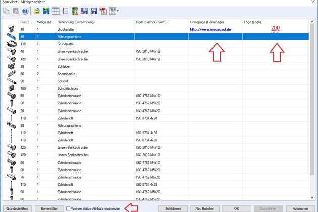Stückliste: Elementattribute auswerten für Baugruppen