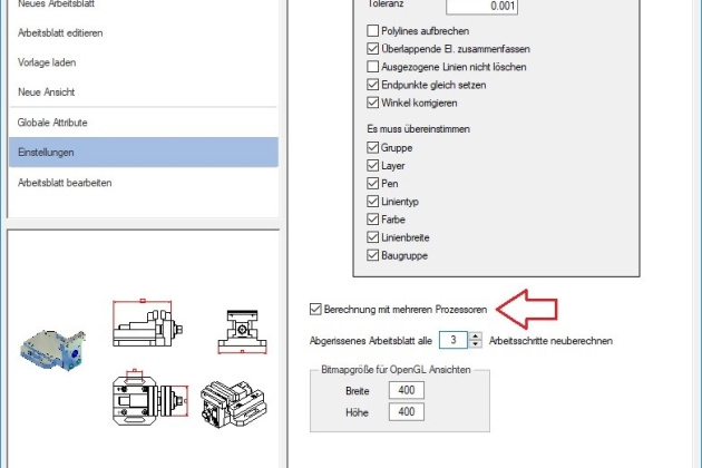 Die Berechnung der Ansichten mit mehreren Prozessoren wurde weiter optimiert und ist im Schnitt ca. 50% schneller geworden als in MegaCAD 2018. Außerdem werden mehrere Prozessoren nicht nur beim Umschalten auf das Arbeitsblatt, sondern auch beim Einfügen und Editieren der Ansichten benutzt.