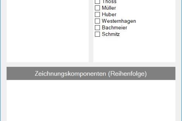 Wichtig ist die Festlegung welche Benutzer zur gleichen Zeit an einer Multi-User-Zeichnung arbeiten darf. In dem Beispiel wurden zu der Multi-User-Zeichnung Antriebswell_1213 als Benutzer neben dem Benutzer Thoss noch Müller und Huber hinzugefügt.