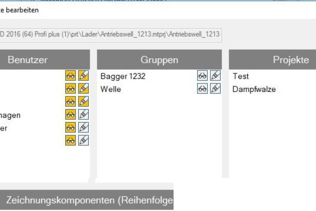 Unsere erweiterte Benutzerverwaltung ermöglicht das parallele Arbeiten an einem Projekt. Sie können Schreib- und Leserechte Benutzern innerhalb einer Zeichnung vergeben, wodurch Sie ausgewählte Bereiche oder Baugruppen innerhalb einer Zeichnung für bestimmte Benutzer sperren und vor unerwünschten Eingriffen schützen. Durch diese neue Möglichkeit wird das verteilte Arbeiten an einer Zeichnung durch mehrere Benutzer GLEICHZEITIG möglich!